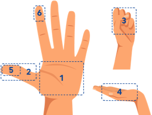 - 3 ounces of meat, fish or poultry; palm of hand (no fingers)