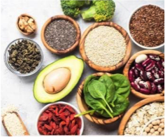 - Vegetables, fruits, nuts, legumes such as beans and peas, whole grains